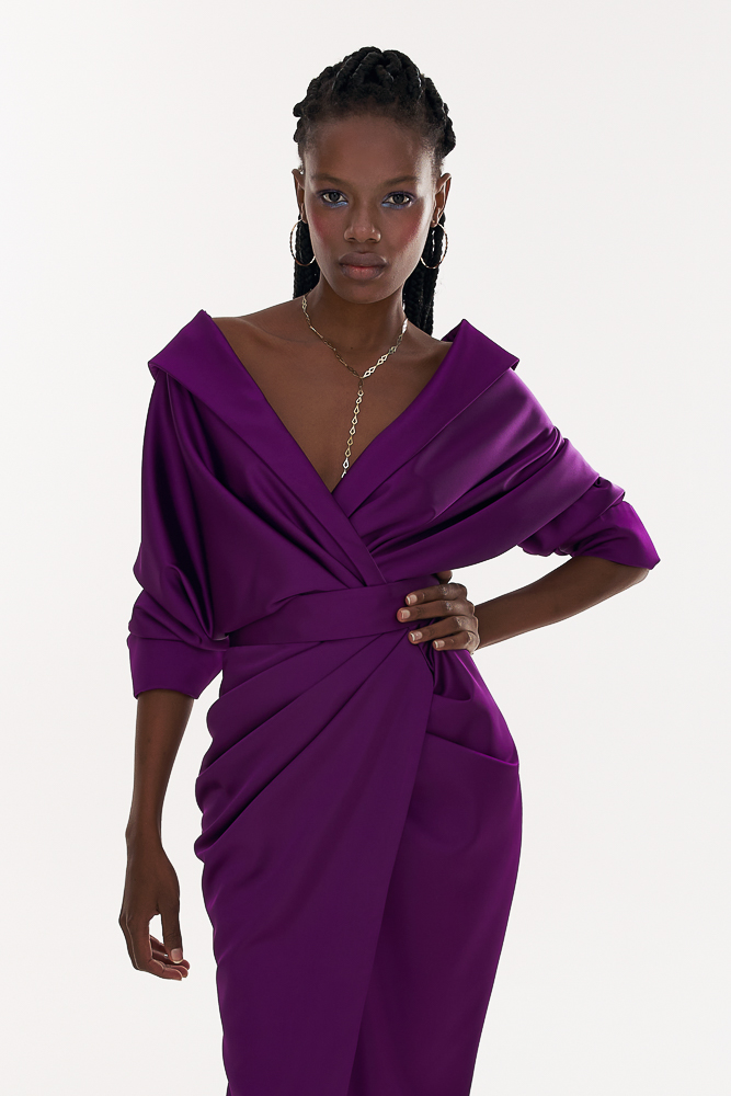 Home  >  Collections  >  OCCASION WEAR  >  Wedding guest  >  ANGELINA MIDI ROYAL PURPLE SATIN DRESS